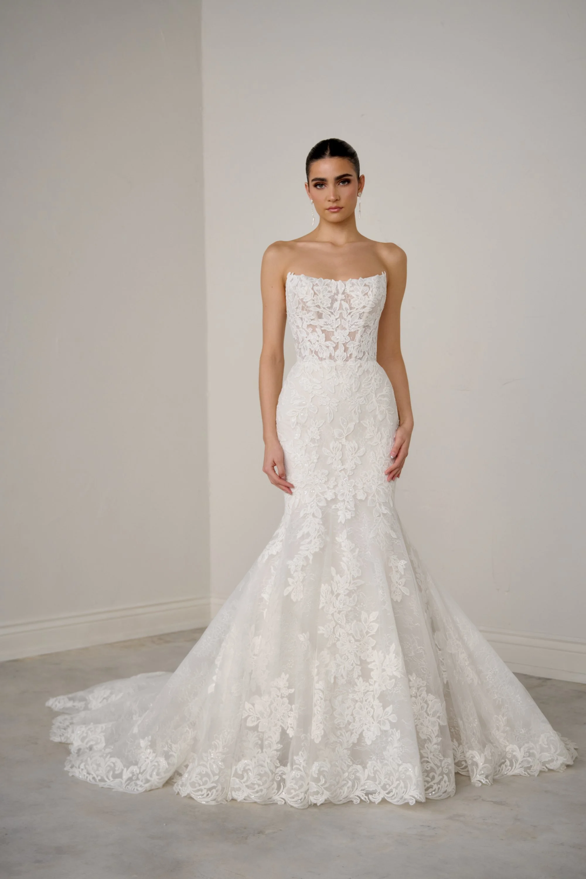 Scoop Neck Lace Mermaid With Detachable Sleeves.