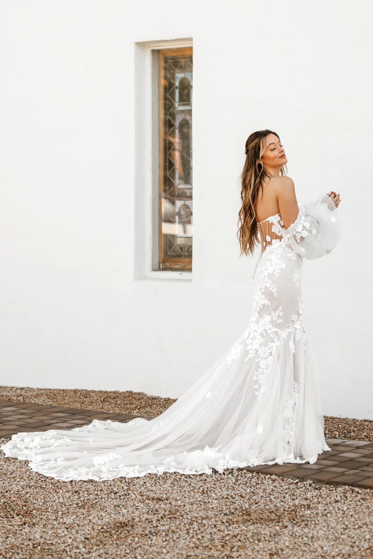 fit and flare with detachable off-the-shoulder long sleeves